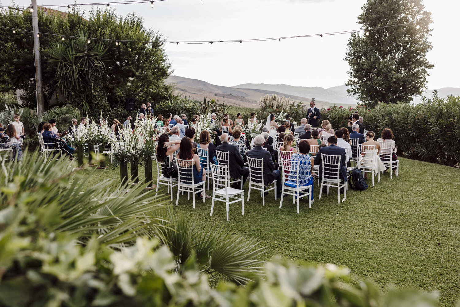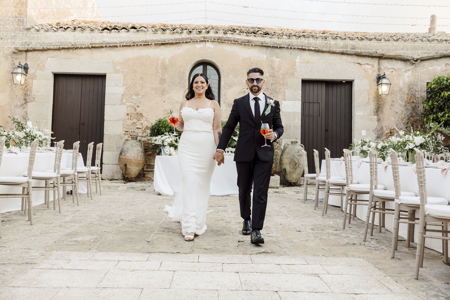 Il risultato è stato un matrimonio elegante e autentico, in cui ogni momento si è inserito con naturalezza nel contesto, creando un’esperienza armoniosa e avvolgente. Gli sposi hanno riconosciuto nel progetto una lettura sensibile dei loro desideri, sentendosi rappresentati in ogni scelta, mentre gli ospiti internazionali e siciliani hanno vissuto la giornata come un viaggio emotivo tra paesaggio, luce e tradizione. Un evento pensato in chiave siciliana contemporanea, capace di stupire senza eccessi, che restituisce il valore di una progettazione attenta, rispettosa e profondamente connessa al luogo e alle persone che lo abitano.
