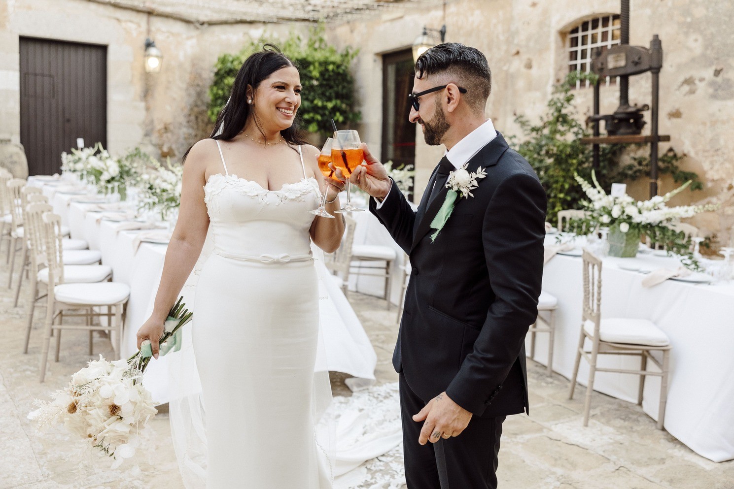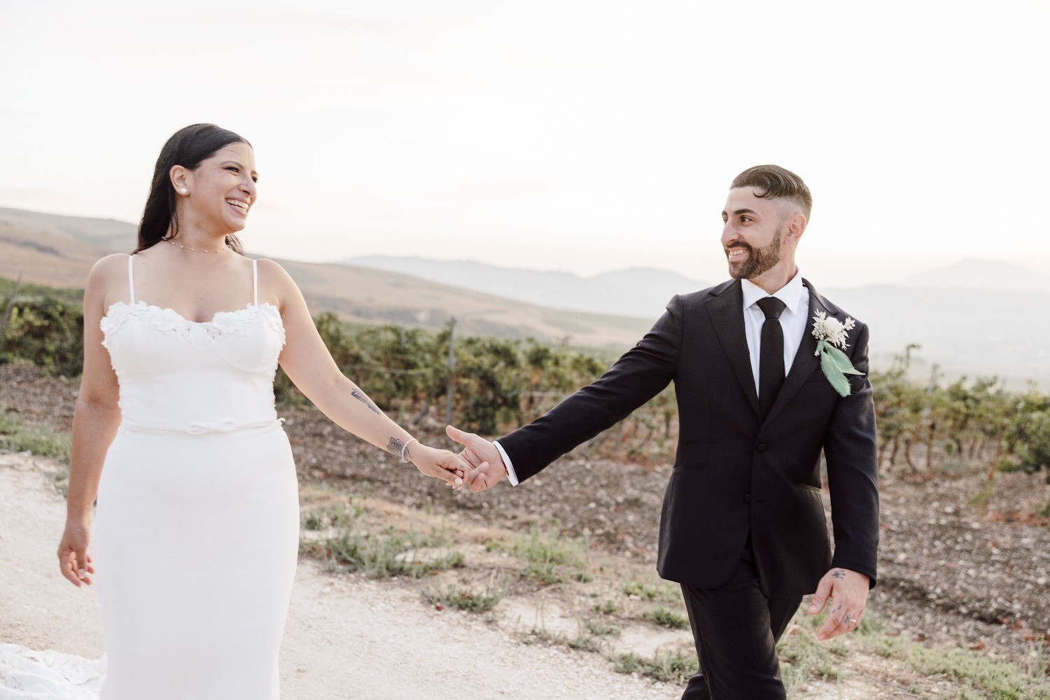 Selene e Vincent sono una coppia internazionale, entrambi nati a New York ma profondamente legati alle proprie origini siciliane e turche. La scelta di sposarsi in Sicilia nasce dal desiderio di tornare a una dimensione autentica e familiare, celebrando il loro amore in un luogo capace di accogliere un matrimonio intimo e significativo. Cercavano un contesto speciale, lontano dagli eccessi, che parlasse di radici, paesaggio e verità emotiva. L’obiettivo del progetto è stato fin da subito chiaro: trasformare un luogo già carico di bellezza in un’esperienza elegante, coerente e profondamente sentita, in cui ogni scelta fosse naturale conseguenza dell’ambiente e della loro storia.